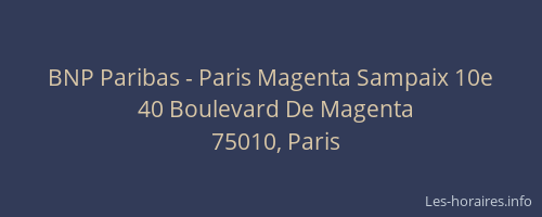Voici les horaires de BNP Paribas - Magenta Sampaix 10e situé à Paris,