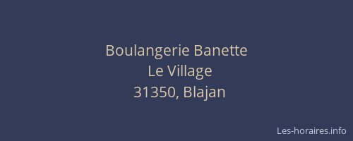 Voici les horaires de Boulangerie Banette situé à Blajan,