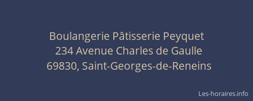 Voici les horaires de Boulangerie Pâtisserie Peyquet situé à Saint-Georges-de-Reneins,