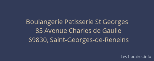 Voici les horaires de Boulangerie Patisserie St Georges situé à Saint-Georges-de-Reneins,