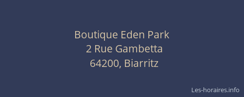 Voici les horaires de Boutique Eden Park situé à Biarritz,