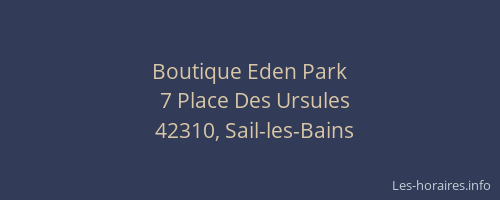 Voici les horaires de Boutique Eden Park situé à Sail-les-Bains,