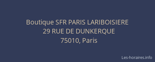 Voici les horaires de Boutique SFR PARIS LARIBOISIERE situé à Paris,
