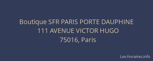 Voici les horaires de Boutique SFR PARIS PORTE DAUPHINE situé à Paris,