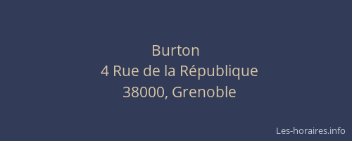 Voici les horaires de Burton situé à Grenoble,