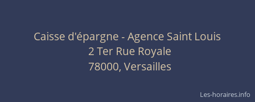 Voici les horaires de Caisse d'épargne - Agence Saint Louis situé à Versailles,