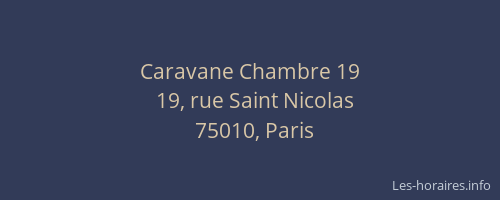 Voici les horaires de Caravane Chambre 19 situé à Paris 10ème,