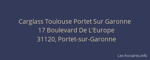 Voici les horaires de Carglass Toulouse Portet Sur Garonne situé à Portet-sur-Garonne,