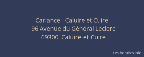 Voici les horaires de Carlance - Caluire et Cuire situé à Caluire-et-Cuire,