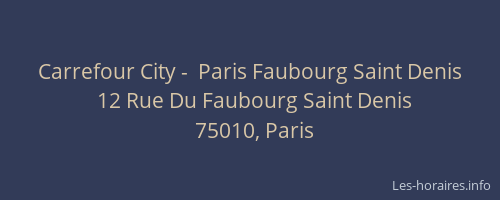 Voici les horaires de Carrefour City - Faubourg Saint Denis situé à Paris,