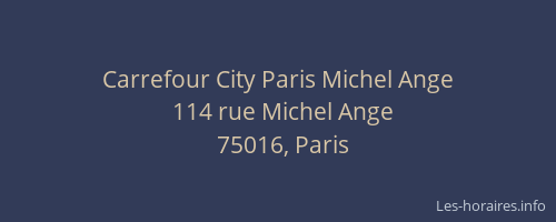 Voici les horaires de Carrefour City Michel Ange situé à Paris,
