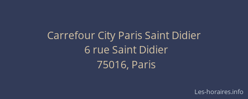 Voici les horaires de Carrefour City Saint Didier situé à Paris,