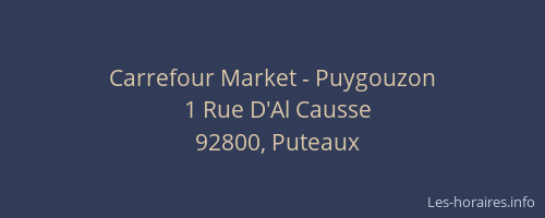 Voici les horaires de Carrefour Market - Puygouzon situé à Puteaux,