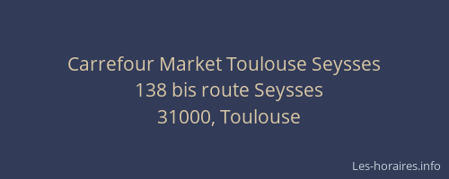 Voici les horaires de Carrefour Market Seysses situé à Toulouse,
