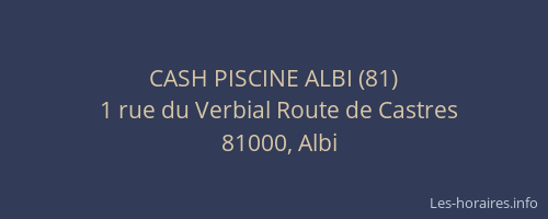 Voici les horaires de CASH PISCINE ALBI (81) situé à Albi,