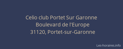 Voici les horaires de Celio club Portet Sur Garonne situé à Portet-sur-Garonne,