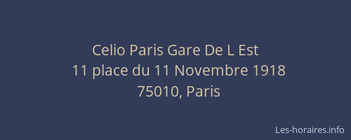 Voici les horaires de Celio Gare De L Est situé à Paris,
