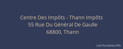 Voici les horaires de Centre Des Impôts - Impôts situé à Thann,