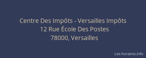 Voici les horaires de Centre Des Impôts - Impôts situé à Versailles,