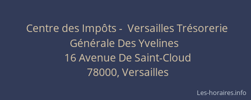Voici les horaires de Centre des Impôts - Trésorerie Générale Des Yvelines situé à Versailles,