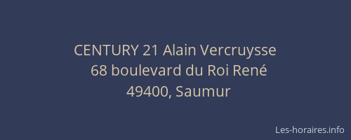 Voici les horaires de CENTURY 21 Alain Vercruysse situé à Saumur,