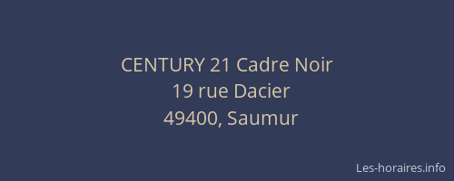 Voici les horaires de CENTURY 21 Cadre Noir situé à Saumur,