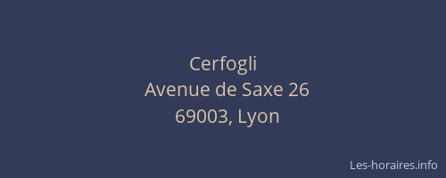 Voici les horaires de Cerfogli situé à Lyon 3ème,