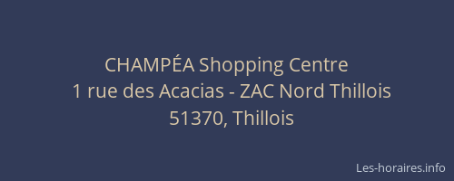 Voici les horaires de CHAMPÉA Shopping Centre situé à Thillois,