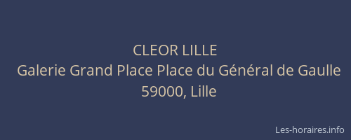 Voici les horaires de CLEOR LILLE situé à Lille,