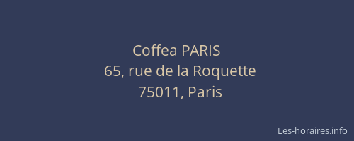 Voici les horaires de Coffea PARIS situé à Paris 11ème,