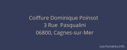 Voici les horaires de Coiffure Dominique Poinsot situé à Cagnes-sur-Mer,