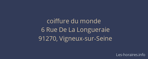 Voici les horaires de coiffure du monde situé à Vigneux-sur-Seine,