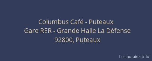 Voici les horaires de Columbus Café - situé à Puteaux,