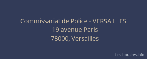 Voici les horaires de Commissariat de Police - VERSAILLES situé à Versailles,