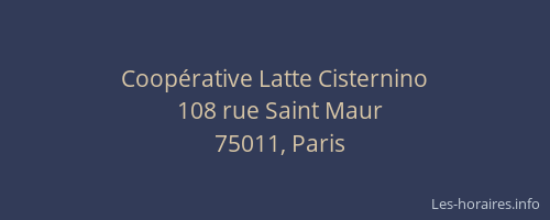 Voici les horaires de Coopérative Latte Cisternino situé à Paris 11ème,