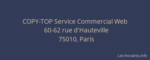 Voici les horaires de COPY-TOP Service Commercial Web situé à Paris 10ème,