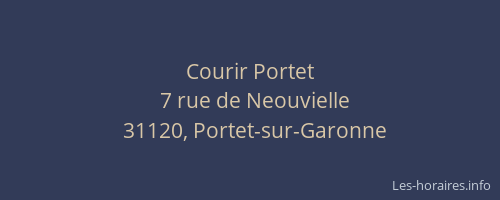 Voici les horaires de Courir Portet situé à Portet-sur-Garonne,