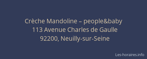 Voici les horaires de Crèche Mandoline – people&baby situé à Neuilly-sur-Seine,