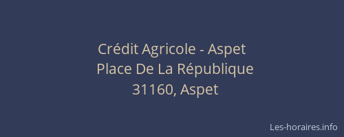 Vous pouvez renseigner les horaires Crédit Agricole - situé à Aspet,