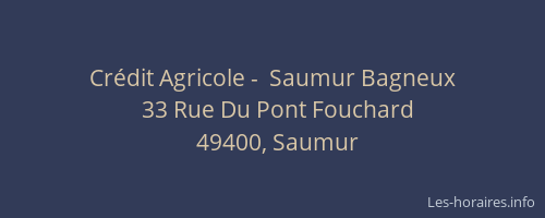 Voici les horaires de Crédit Agricole - Bagneux situé à Saumur,