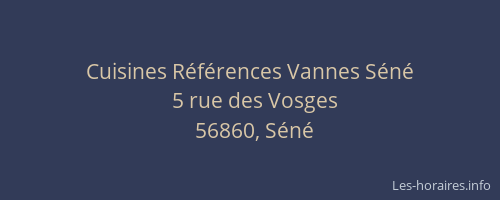 Voici les horaires de Cuisines Références Vannes Séné situé à Séné,