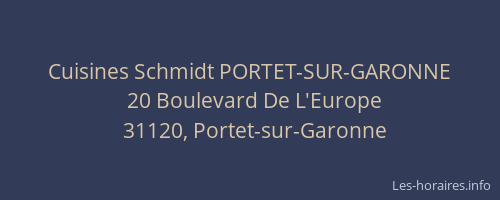 Voici les horaires de Cuisines Schmidt PORTET-SUR-GARONNE situé à Portet-sur-Garonne,