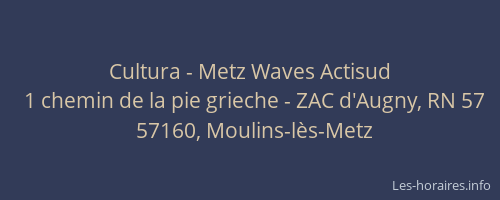 Voici les horaires de Cultura - Metz Waves Actisud situé à Moulins-lès-Metz,