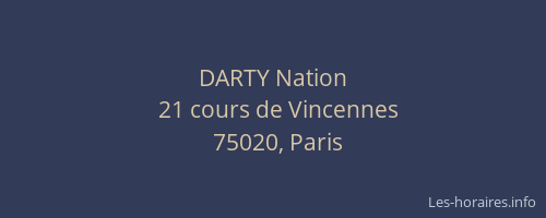 Voici les horaires de DARTY Nation situé à Paris 20ème,