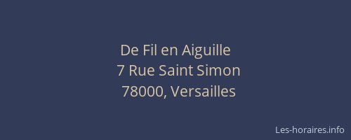 Voici les horaires de De Fil en Aiguille situé à Versailles,