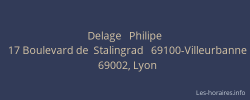 Voici les horaires de Delage Philipe situé à Lyon 2ème,