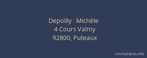 Voici les horaires de Depoilly Michèle situé à Puteaux,