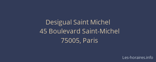 Voici les horaires de Desigual Saint Michel situé à Paris 5ème,