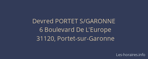 Voici les horaires de Devred PORTET S/GARONNE situé à Portet-sur-Garonne,