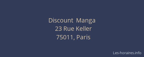 Voici les horaires de Discount Manga situé à Paris 11ème,